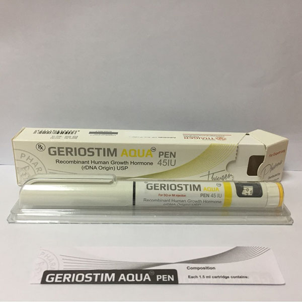 Geriostim Aqua Pen 45iu HGH by Thaiger Pharma. Human Growth Hormone is produced by the pituitary gland, the primary form consisting of 191 amino acid chain. HGH is largely responsible for the growth of our bones, organs and other tissue.